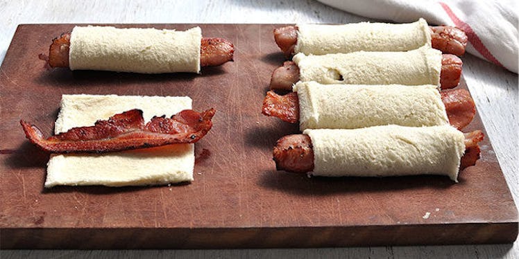 Once you wrap your sizzling bacon in the sandwich bread, it's time to continue the cooking process as if you're simply making french toast.
