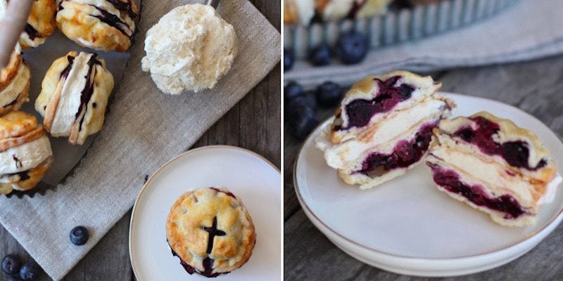 That's right. The clever foodies behind the blog, Honestly Yum, just answered all of your pie-filled prayers by turning your beloved sedentary snack into a portable Blueberry Pie Ice Cream Sandwich you can devour sans silverware.