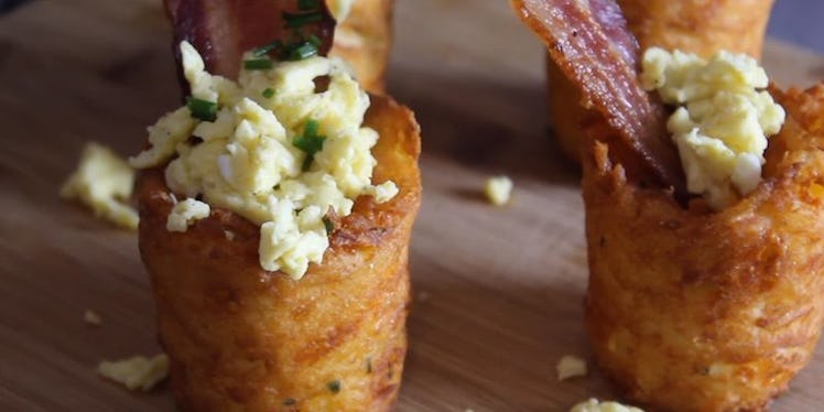 That's right. Hash-brown shot glasses filled with eggs and bacon are now real things, and they look delicious AF.