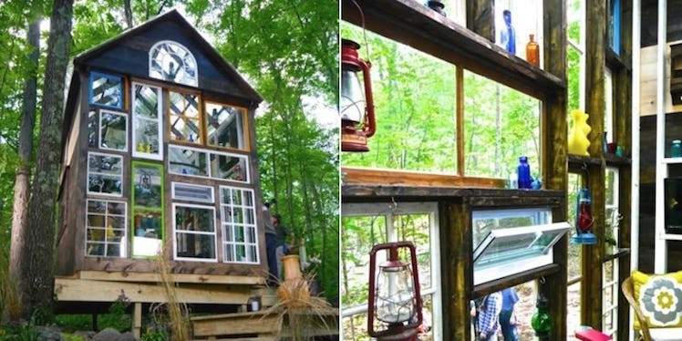 The house was built by Derek "Deek" Diedricksen using eco-friendly materials like reclaimed wood and recycled glass windows. The project took his team four days and less than $10,000 to construct.