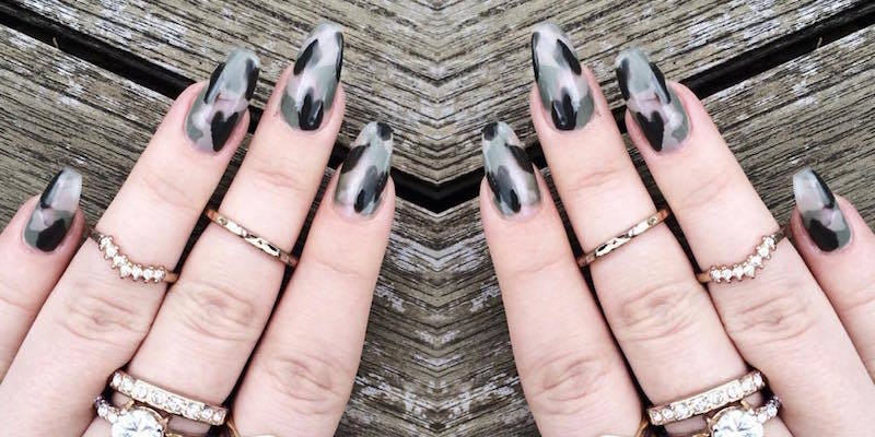 Just as the name implies, this new beauty craze takes classic camouflage print and turns it into a mesmerizing military-inspired manicure.