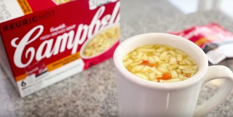 All you have to do is empty a packet of noodles into a mug, throw a Campbell's K-cup into your Keurig and hit the brew button. Within no time, you'll have a freshly-brewed cup of chicken noodle soup just waiting to be devoured.