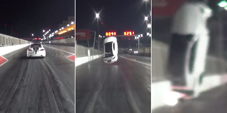 Car Takes Off And Literally Flies Off The Track During A Drag Race (Video)