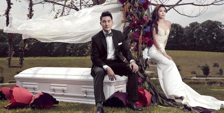 Before tying the knot, Jenny Tay and her fiancé, Darren Cheng, decided to capture a series of wedding photos that are to die for -- literally.