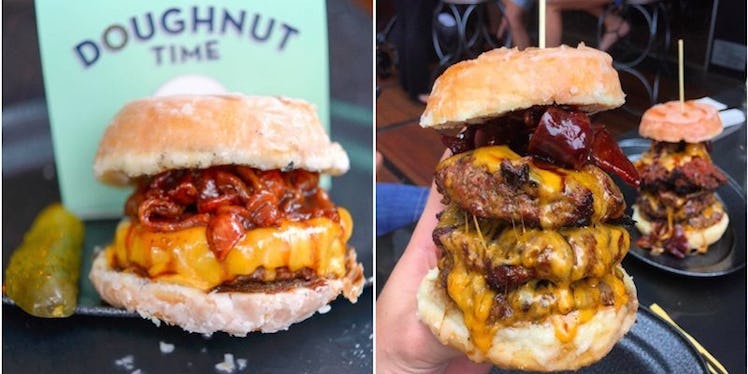 You get a Wagyu beef and Nutella-smoked bacon cheeseburger nestled between two halves of a glazed doughnut.