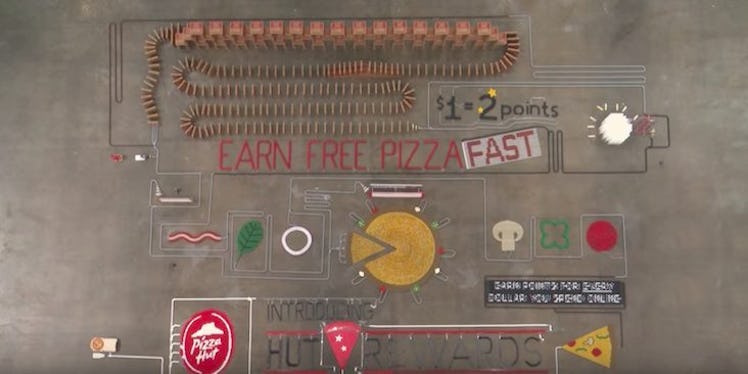Also, I can't help but think that Pizza Hut unveiling their rewards program by toppling dominoes over is a jab at their competitor, Domino's, who's been owning the game when talking about pizza reward programs.