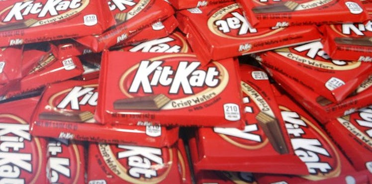 Everyone's inner Augustus Gloop delights at the thought of a piece of chocolate. Naturally, when news about an already chocolatey treat suggests even more chocolate is being added to the mix, Willy Wonka should just sound the alarms. A cake-stuffed Kit Kat has hit the shelves, and naturally, it's the perfect excuse to have your cake and eat it, too.