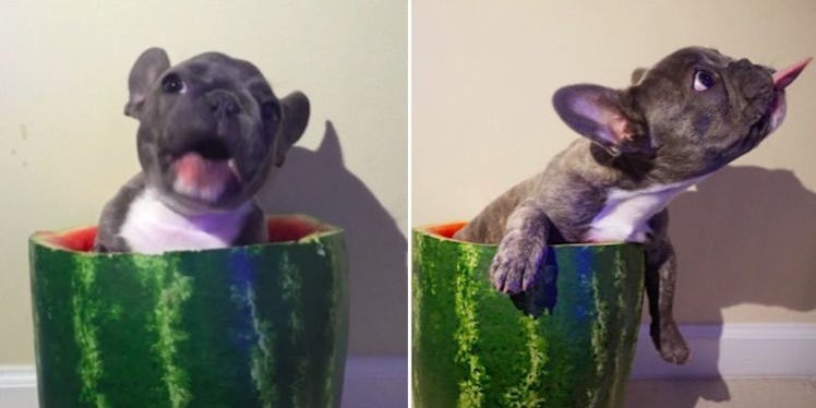 In the adorable video, you can see Rolex go straight to hungry-hound heaven as he munches away on the inside of this huge watermelon, and just when you thought he couldn't possibly get any cuter, he basically makes all of our hearts explode by falling out of it at the end of the clip.