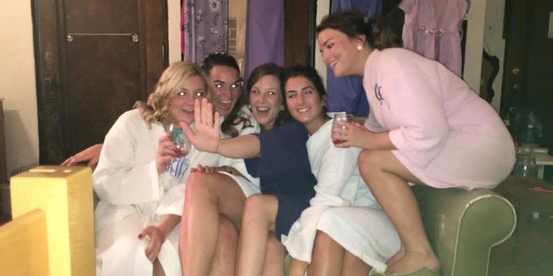 The friends kicked off the night by throwing on their robes and prepping themselves with what looks like the ultimate bridal pampering...
