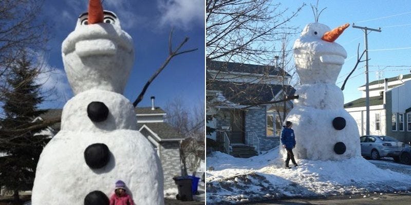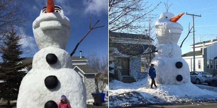 This thing isn't your ordinary old Frosty the Snowman. Sabourin is actually a huge fan of the movie "Frozen," so he built a colossal replica of Olaf that stands at a towering 20 feet tall!
