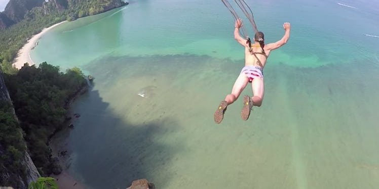 The suspension jump, performed in Ton Sai, Thailand, left little room for error. After all, the parachute was attached directly to Miramant's skin. What could possibly have gone wrong?