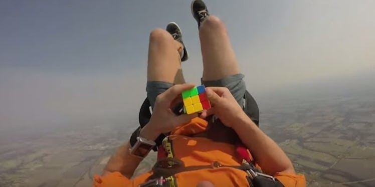 You haven't accomplished the craziest Rubik's Cube stunt to date: solving the 3D puzzle while free-falling from a plane.