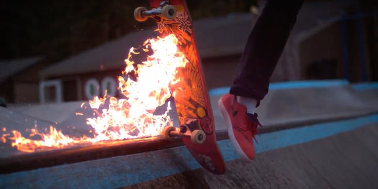 In a new video by the YouTube channel, BeyondSlowMotion, a bunch of dudes set their skateboards on fire and proceeded to ride them like it was no big thing. They call themselves "The Flamers."