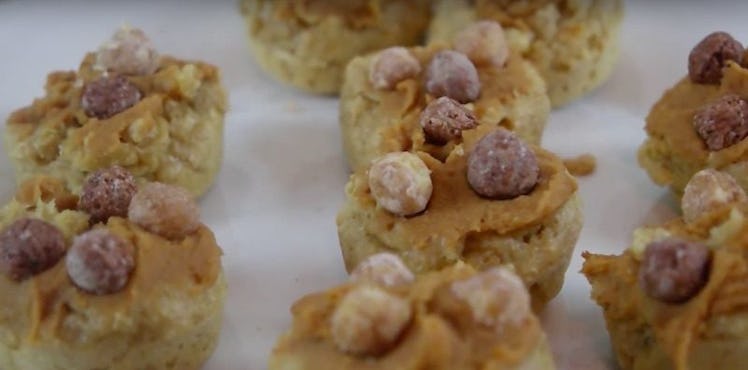 1. Doughnut baking pan (these can be purchased at almost any online retailer for under $10) 2. Cooking spray 3. Old-fashioned oats 4. Protein powder (preferably in the flavor you want your doughnut to resemble) 5. Apple sauce 6. Baking powder 7. One egg
