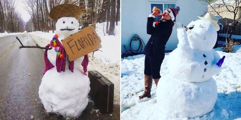 As you can imagine, lots of people put the winter weather to good use by blessing bleak landscapes with all sorts of snowmen.