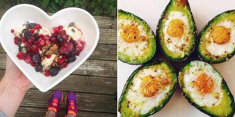 To start your day off right, you should aim to eat a balanced breakfast that contains about 30 to 40 grams of protein, a complex carb and a piece of fruit. This will get you going in the morning and keep you feeling full until lunchtime rolls around.