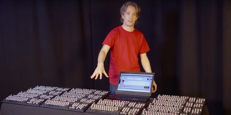 The keyboard, which is made up of 14 full-size keyboards, features every single emoji there is -- even the ones that don't work yet. From your typical, yellow-faced smilies to national flags and the coveted poop emoji, it's all found here on this array of keyboards.
