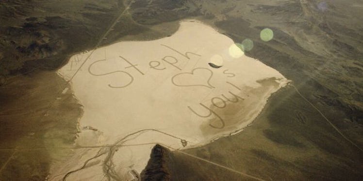 Hyundai orchestrated an illustration in the desert sand using a fleet of its new Genesis models, and Stephanie's dad grabbed his camera and scoured the Earth's surface for her message. The end result? A heartwarming sensation.