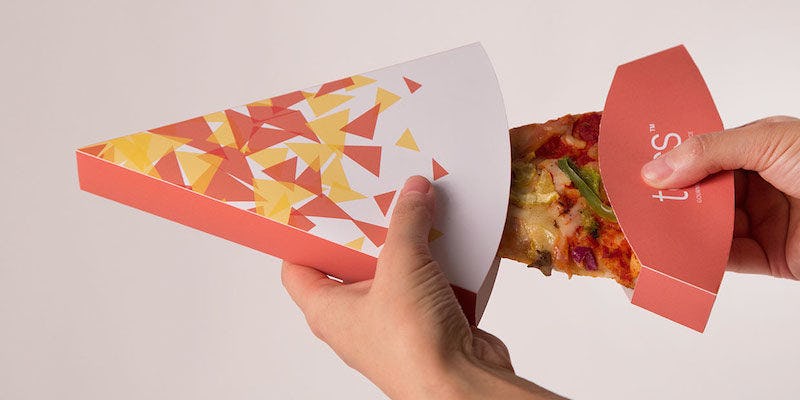 This innovative concept ditches the old-school square design and individually packages your delectable slices into their own triangular-shaped boxes.