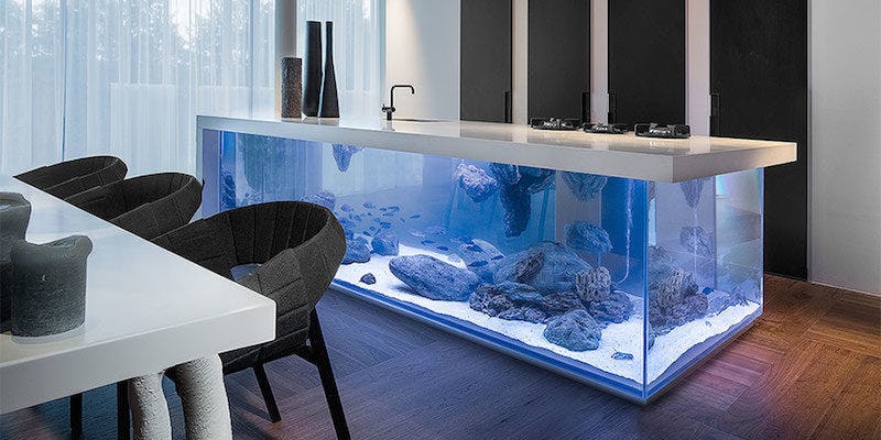 Instead, he took his ocean endeavors to a whole new level of opulence by creating a beautiful countertop resting on an aquarium base that would even impress the likes of Princess Ariel.