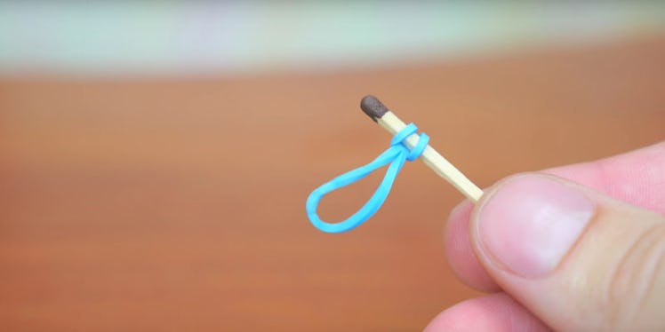 To light a match with a rubber band, all you have to do is tie a cow hitch knot on the match (it's way easier than it sounds), loop the other end around another match and slingshot them together.