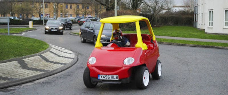 The Toytown Coupé -- a street-legal, motorized version of the Little Tikes Cozy Coupe -- reaches up to 70 mph and can be found on eBay with a price tag of £21,500 ($33,264).
