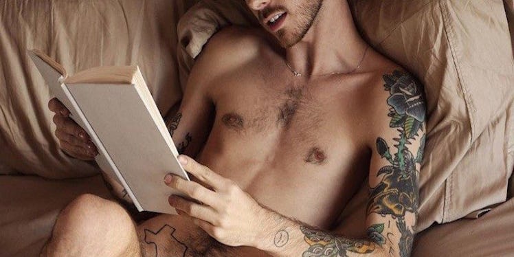 That's right. Austin's sexy photo series features a bunch of hot naked dudes reading in bed, and it's basically the best thing ever.
