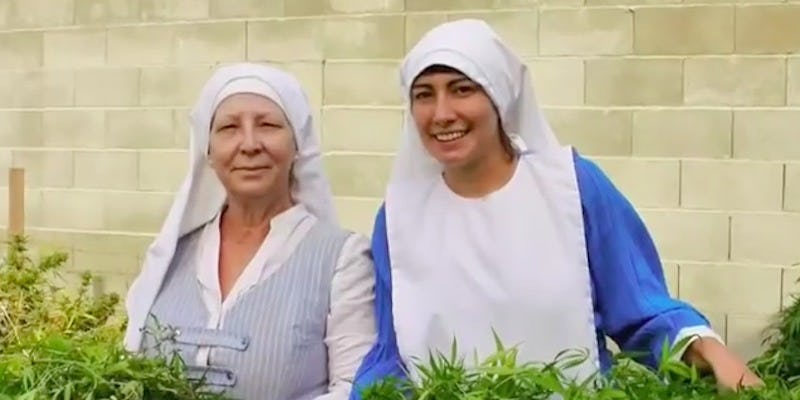 In a recent video uploaded to YouTube by The Denver Channel, we're introduced to Sister Kate and Sister Darcy, two California-based nuns making headlines for their illegal, homegrown pot operation.