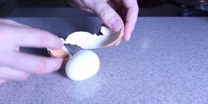 It's not hard to see this is probably the fastest and easiest way to peel an egg. Plus, the whole shell comes right off in one clean piece.