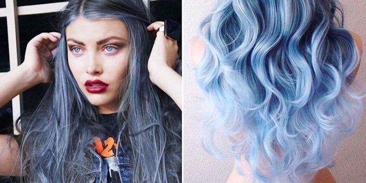 From faded, light-blue locks to classic cerulean cuts and darker indigo rinses, the denim-hair possibilities are pretty much endless.