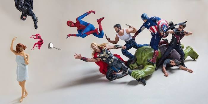 Using a variety of strategically positioned plastic superheroes, Hardjo puts his beloved comic book toys in human-like scenarios that really capture the struggles of daily life.