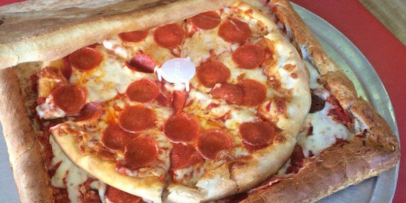Created by Sean Berthiaume, co-owner of Vinnie's Pizzeria in Brooklyn, this epic food invention features a pizza that comes in an edible box made out of, you guessed it, more pizza!
