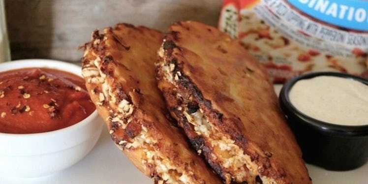 Created by Oh, Bite It!, these badass tacos ditch the traditional Mexican fillings for a pizza crust shell loaded with all the delicious flavors of your favorite marinara and mozzarella meal.