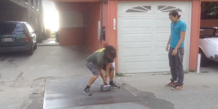 After demonstrating how the hammer works, the YouTuber ventures outside and asks pedestrians to try and lift the hammer. With the electromagnet keeping the hammer in place, many people are left puzzled as to how it could be so heavy.