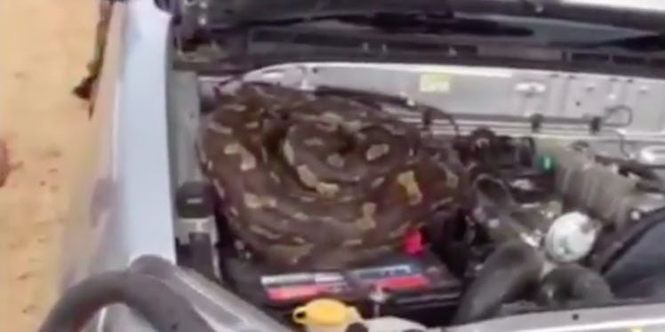 Massive Python Hiding Under This Car Hood Gives New Meaning To 'Car Trouble'