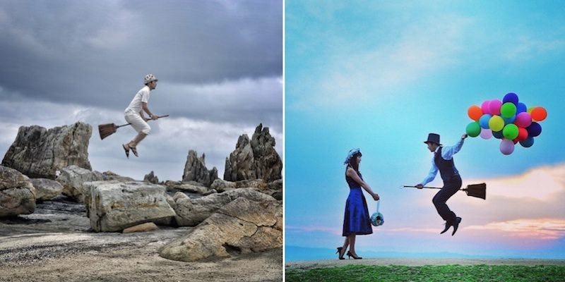 He came up with this magical concept a couple years ago, and since then, he's created an incredible series showcasing his sky-high endeavors.