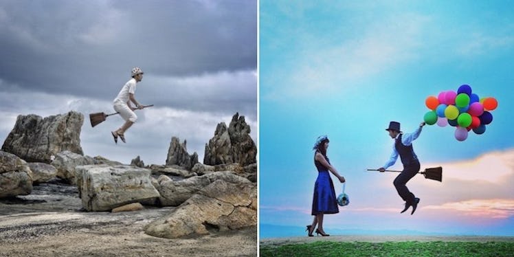 He takes incredible pictures of himself flying around the world on his broomstick.