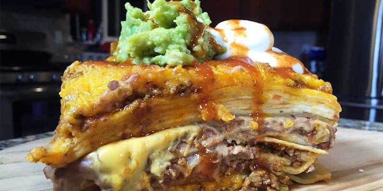 This thing is basically a lasagna not afraid to live más by swapping out the boring Italian ingredients for some south-of-the-border snacks.