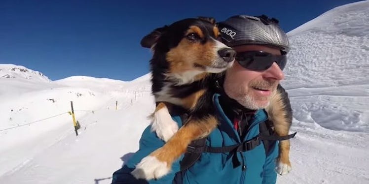 Yep, this little pup is pretty much a pro at hanging on to her best bud's shoulders as he tears up the slopes at top speeds.