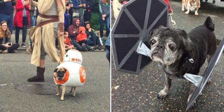 In fact, one woman was nice enough to give the world a glimpse of this glorious dog parade by live-tweeting the whole "Star Wars" pug procession.