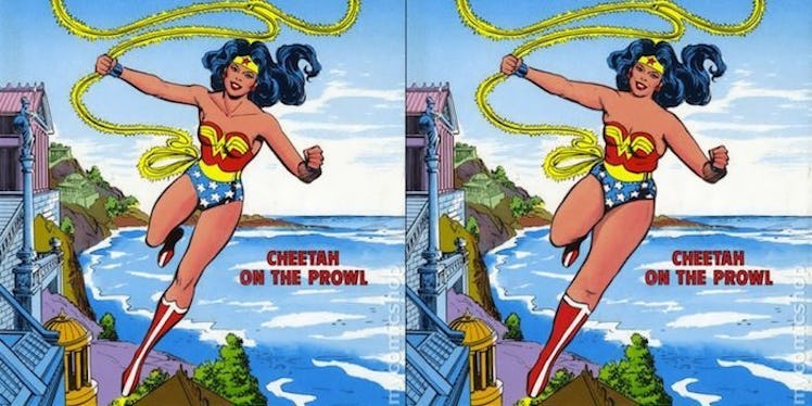 The website Bulimia.com enlisted illustrators to Photoshop the bodies of many superheroes so they'd more closely resemble the average American.