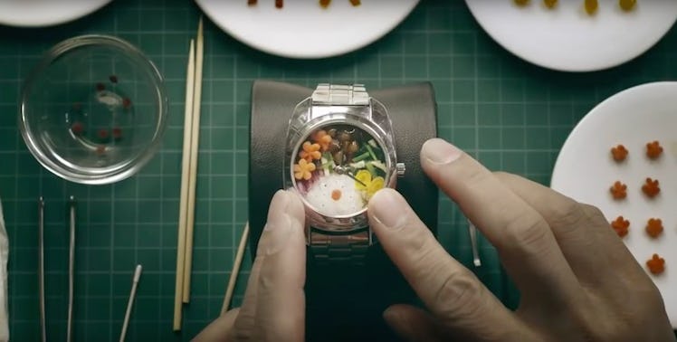 In a recent video uploaded to YouTube by Kyoto-based agriculture company Takii, we're introduced to a tiny wrist watch containing a miniature bento box hidden in its face.
