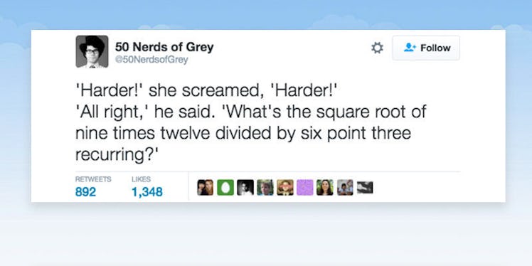 Making her solve difficult equations really turned him on . . . He was a sadomathochist. — 50 Nerds of Grey (@50NerdsofGrey) April 5, 2016