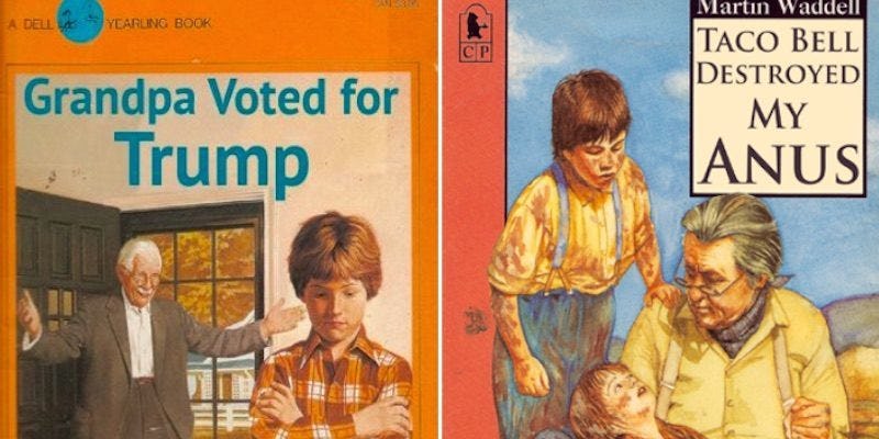Someone just created a Twitter account called Paperback Paradise that gives classic children's books a bunch of new titles coinciding with current events.
