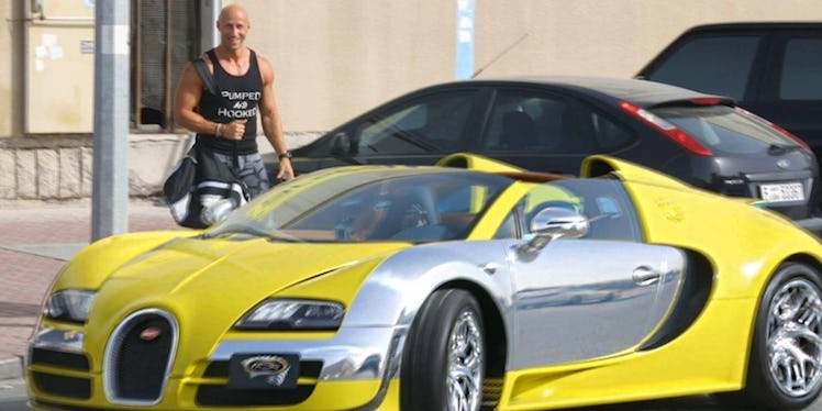 Throughout the video, Persin makes his way to waiting passengers who are obviously confused as to why they're getting picked up in a canary yellow and chrome Bugatti Veyron rather than a Toyota Previa.