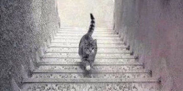 People Can't Figure Out If This Cat Is Going Up Or Down The Stairs (Photo)