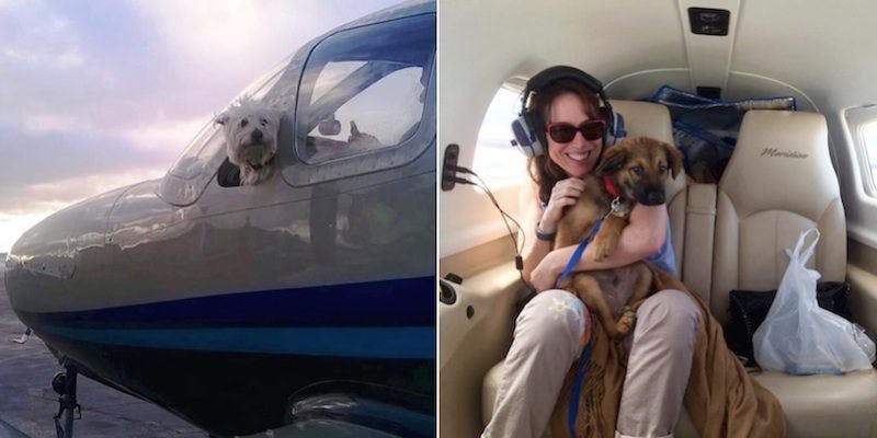 ...and uses private planes or charter planes to fly puppy passengers to new homes.