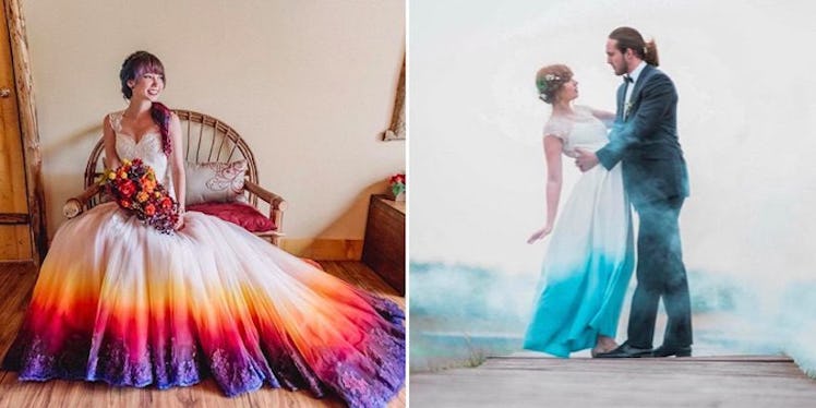 If you're searching for an easy way to turn heads on your wedding day, you'll be glad to know that we just came across a new alternative wedding trend that's simply to dye for: dip-dyed wedding dresses.