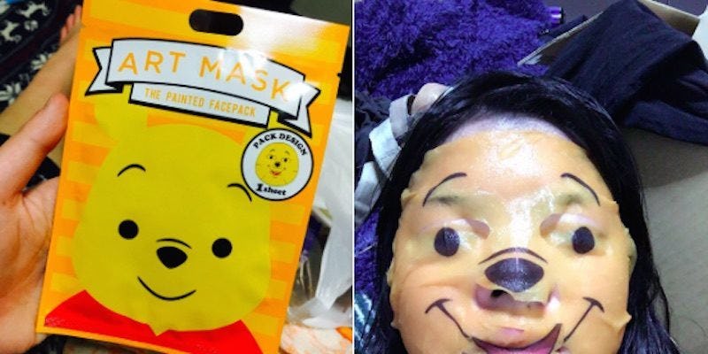Apparently, there's a cosmetic company in Japan that started making "Winnie the Pooh"-themed facial masks.