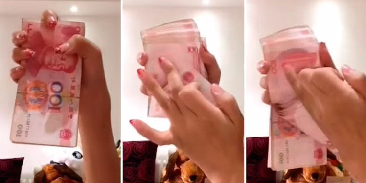 The 30-second masterpiece showcases the unknown woman's impressive ability to cycle through bills using every single finger on her hand separately. In a sense, it's kind of therapeutic to watch.